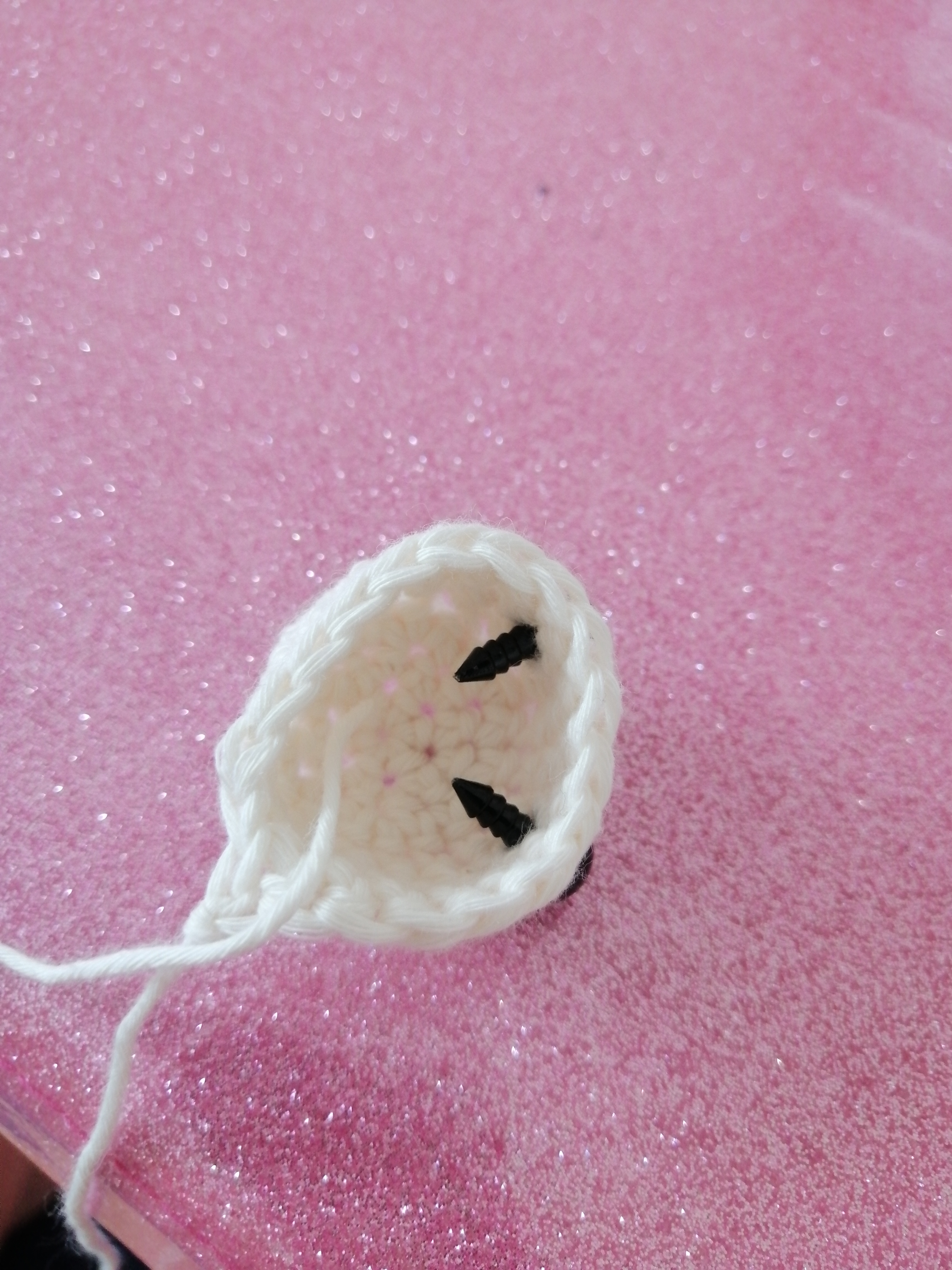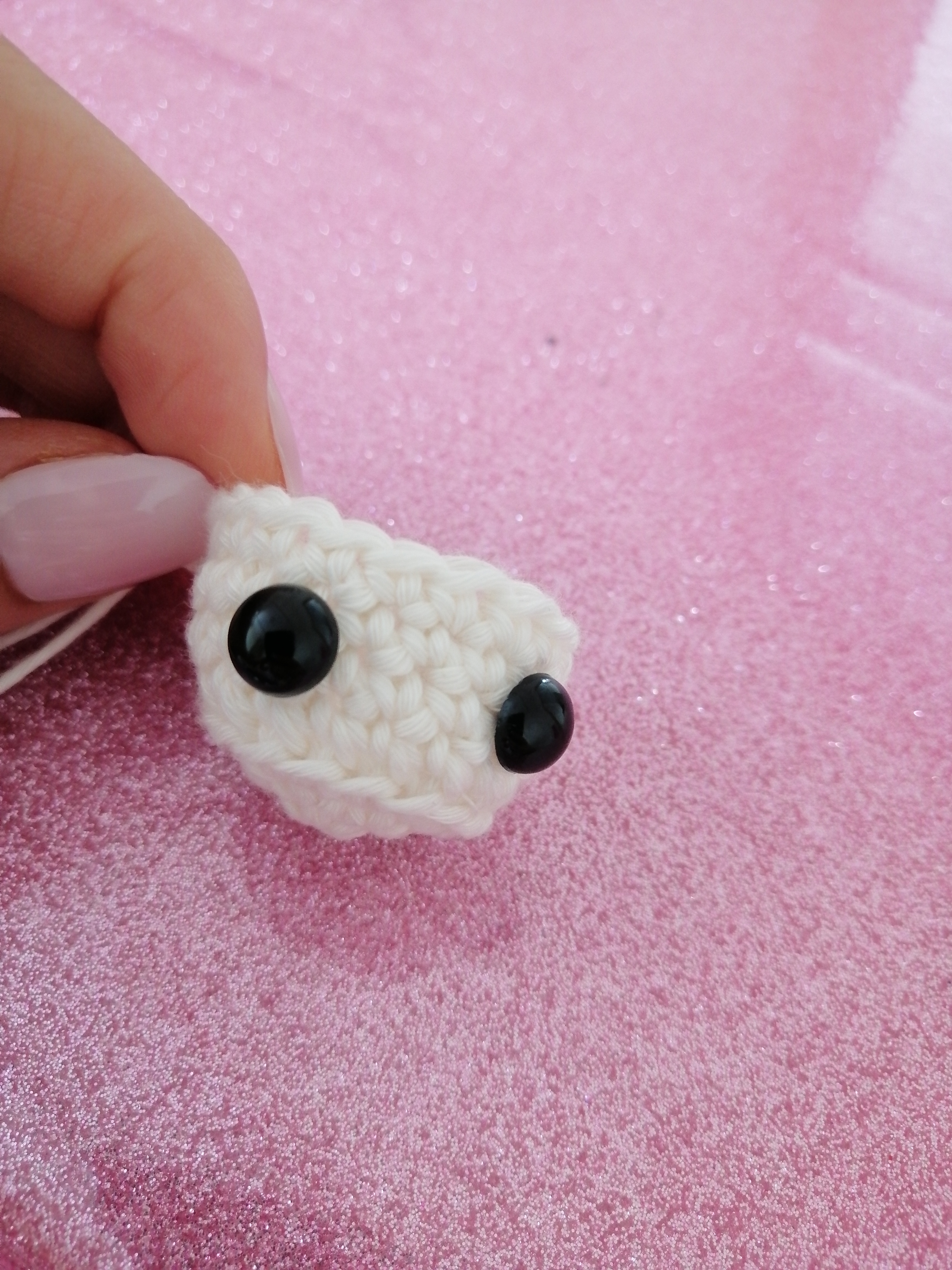 Insert safety eyes, 3 stitches apart, between rounds 5 and 6.